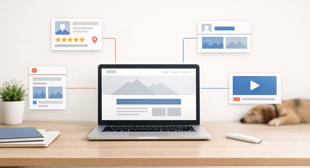 Eine starke Website als Zentrale. Ein vollständig gepflegtes Google-Profil. SEO, das dich lokal sichtbar macht. Und ein oder zwei Social-Media-Kanäle, die zu deiner Zielgruppe passen – und die du wirklich und regelmäßig bespielst, um Menschen auf deine Website zu bringen.